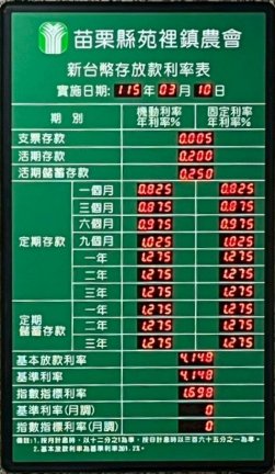 (一)LED利率表安裝購買:存放款利率,政策性,農業發展基金.全國農會客製~LED利率表\匯率表\保管箱.. (二)LED維修或購買專線:04-22609490歡迎來電